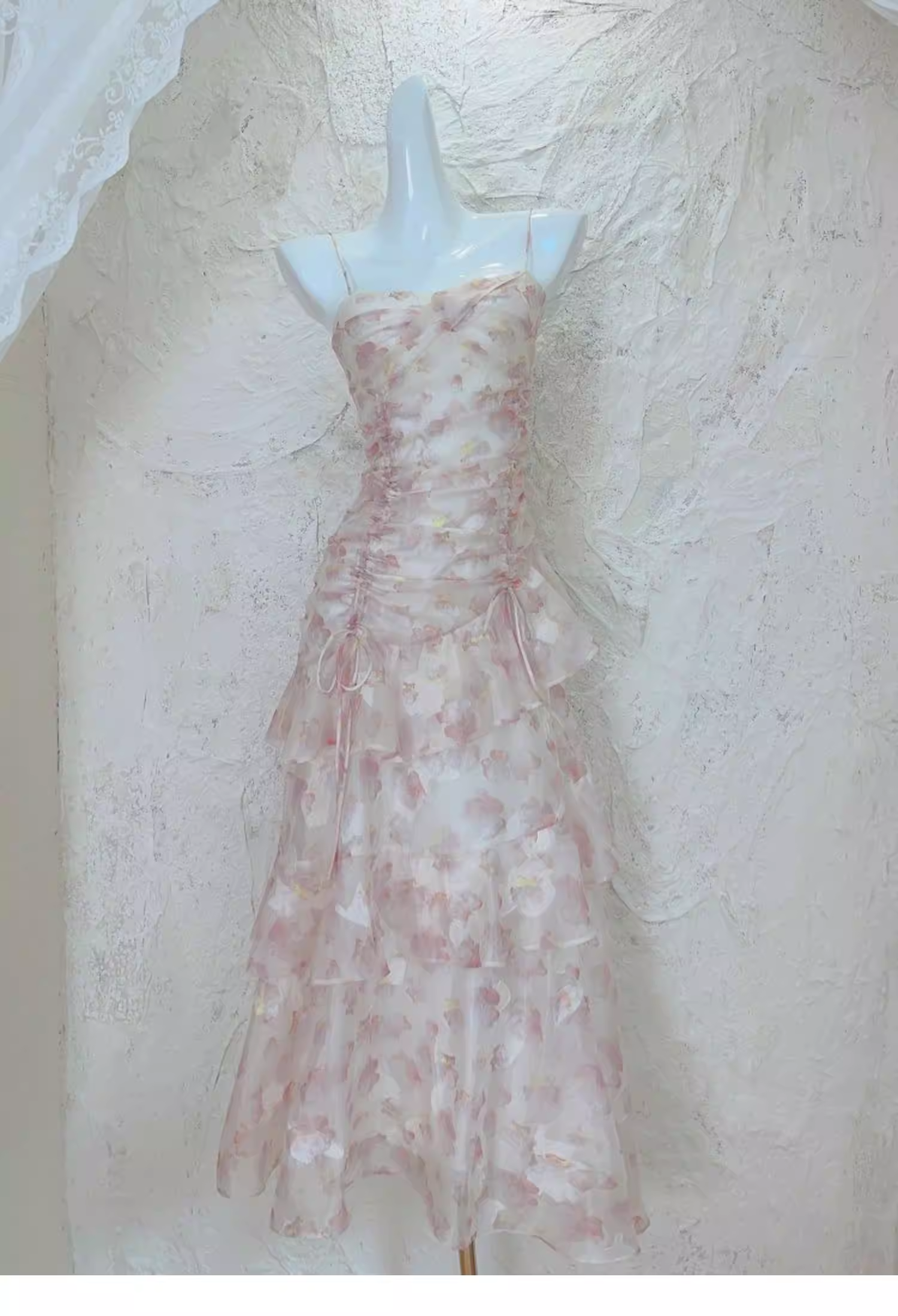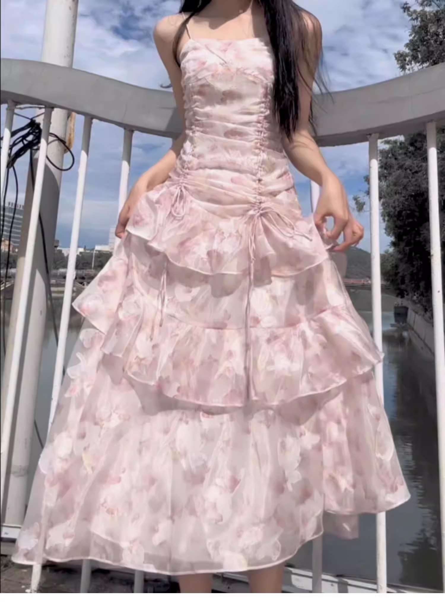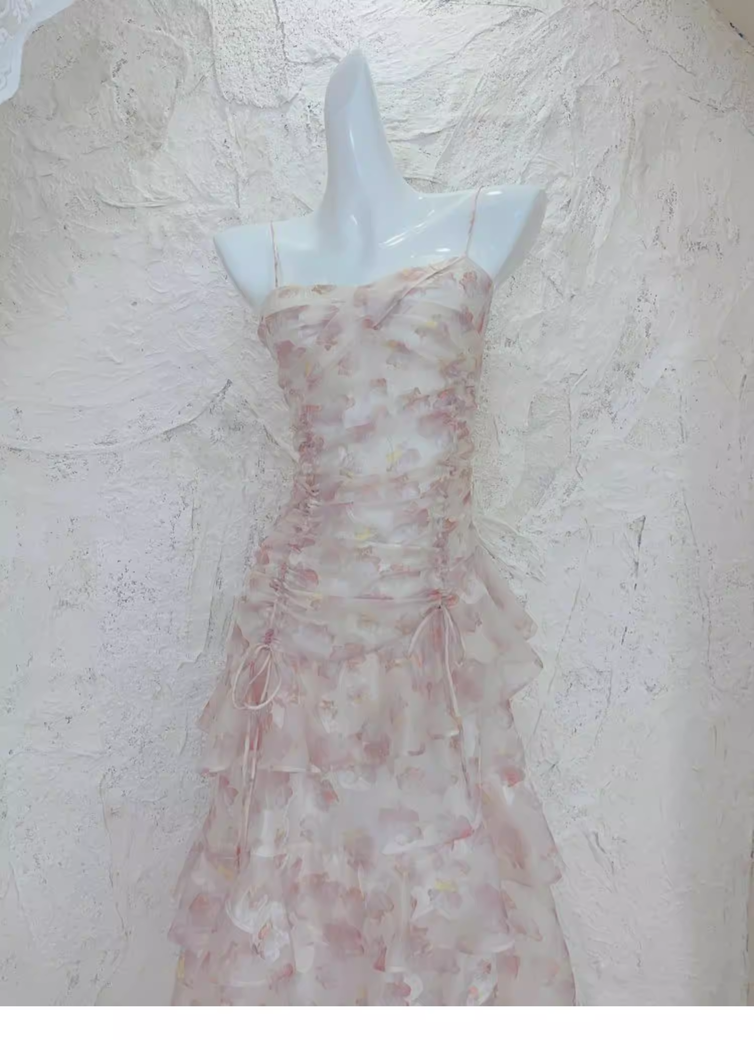 Charming Pink Chiffon Print Floral layered Ruffles Mermaid Party Dress Formal Birthday Prom Dresses SP2000