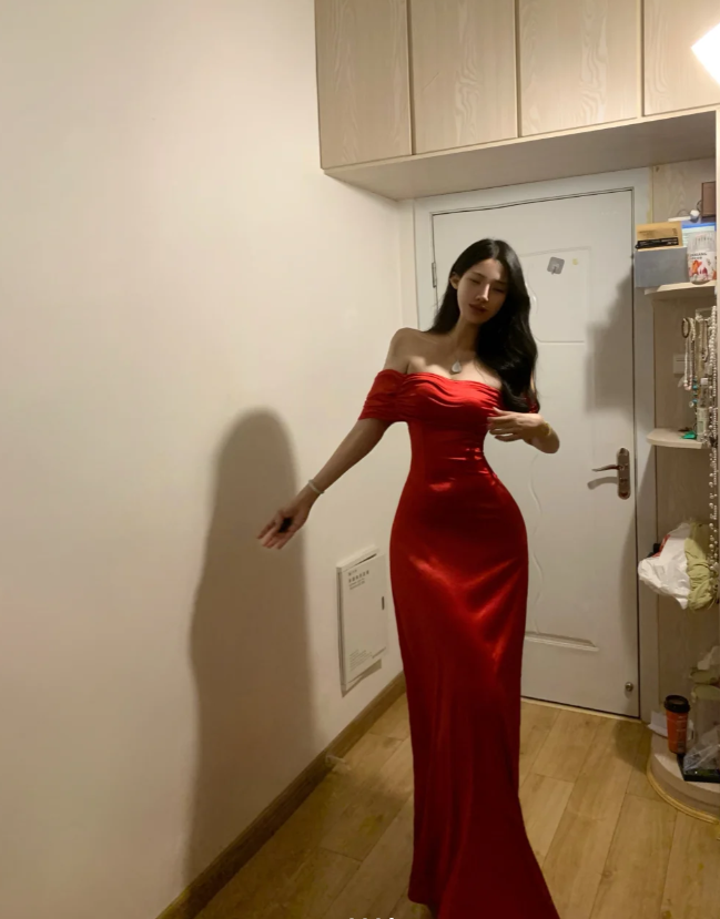 Charming Red Off The Shoulder Satin Mermaid Long Prom Gown Party Dress SP292