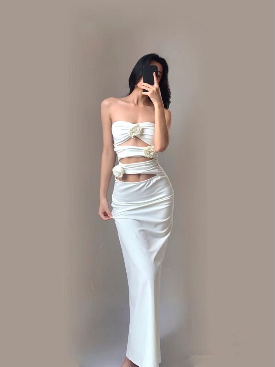 Chic White Strapless Prom Dress,White Party Gown Y5282