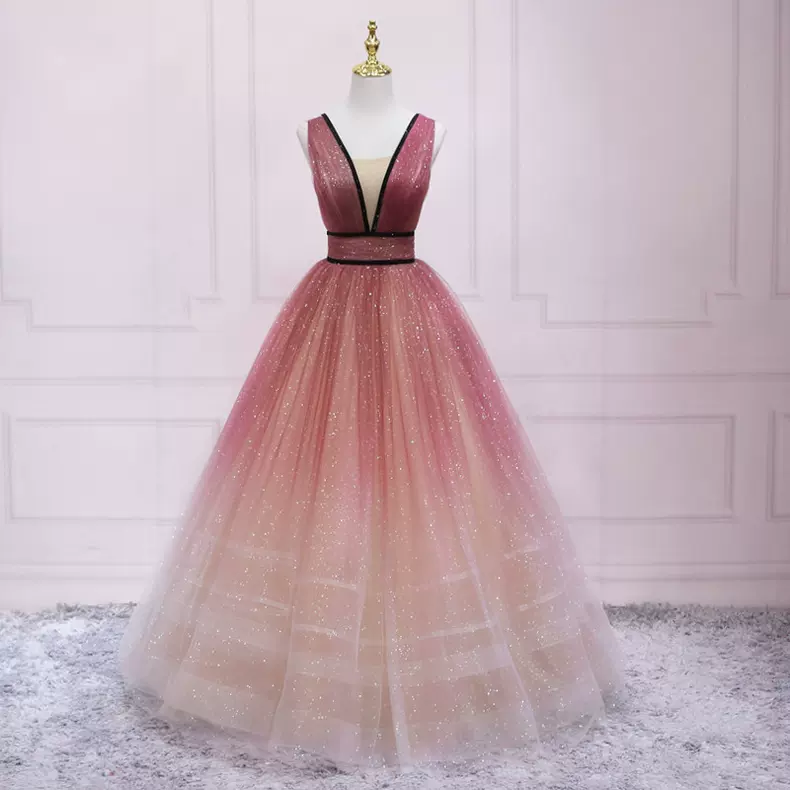Deep V Neck Sleeveless Shiny Prom Dress s27