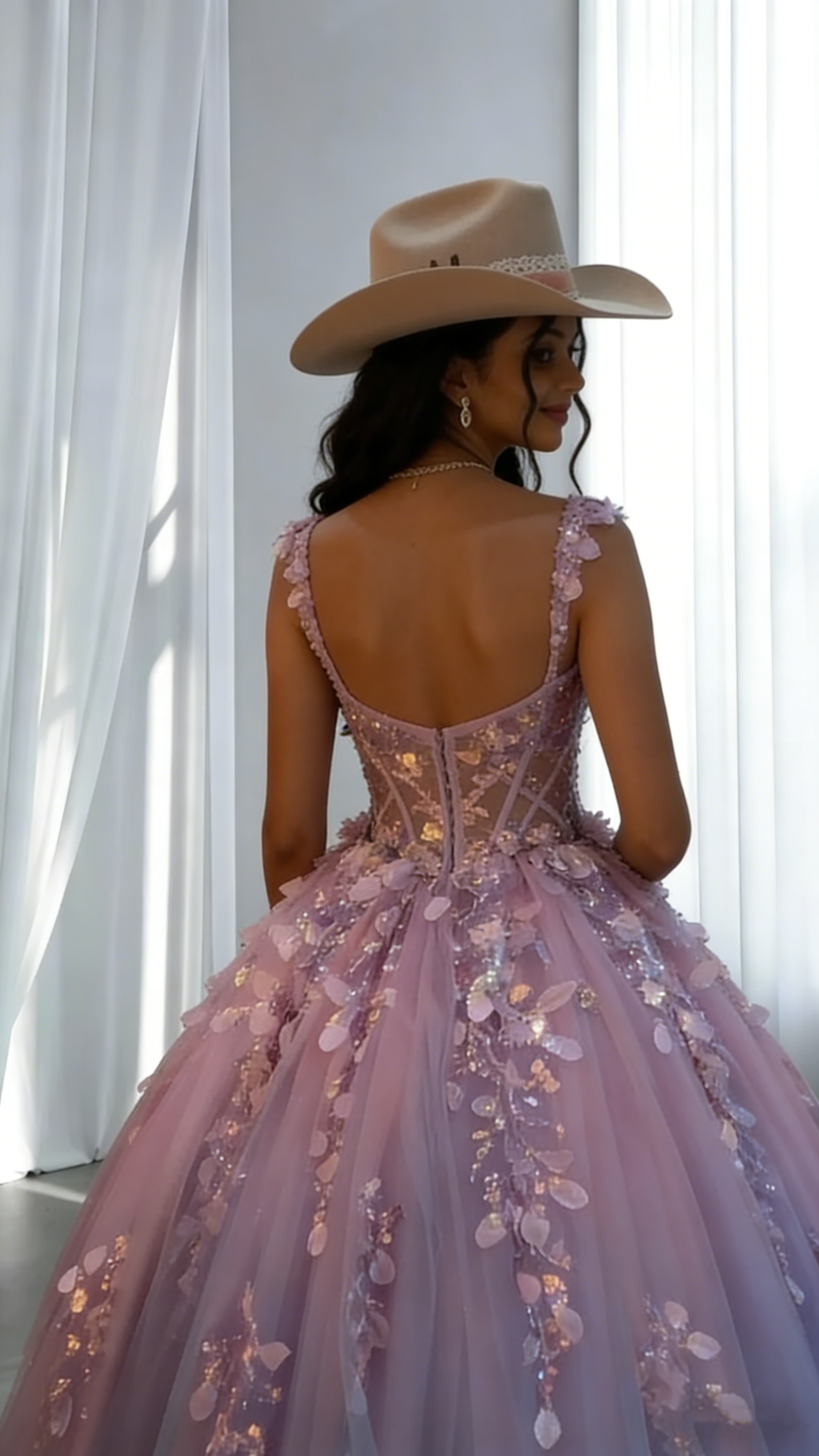 Glamorous Spaghetti Straps Tulle Sequin Appliques Ball Gown Lavender Quinceanera Dress SP1803