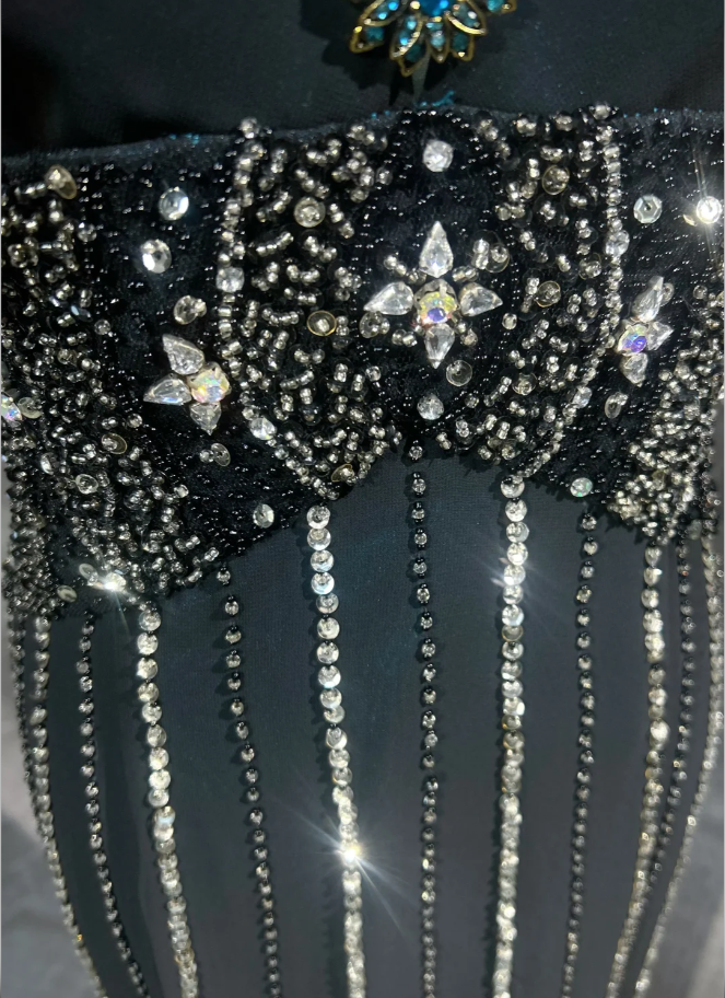 Gorgeous Halter V Neck Peacock Blue Satin Beaded Mermaid Long Evening Dress Backless Prom Gown SP1384