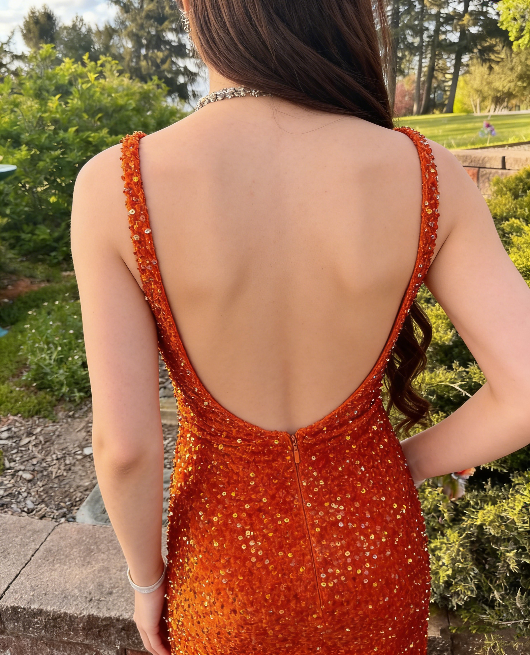 sexy orange sequin mermaid low back prom dress, formal dress,orange open back prom dress Y4338