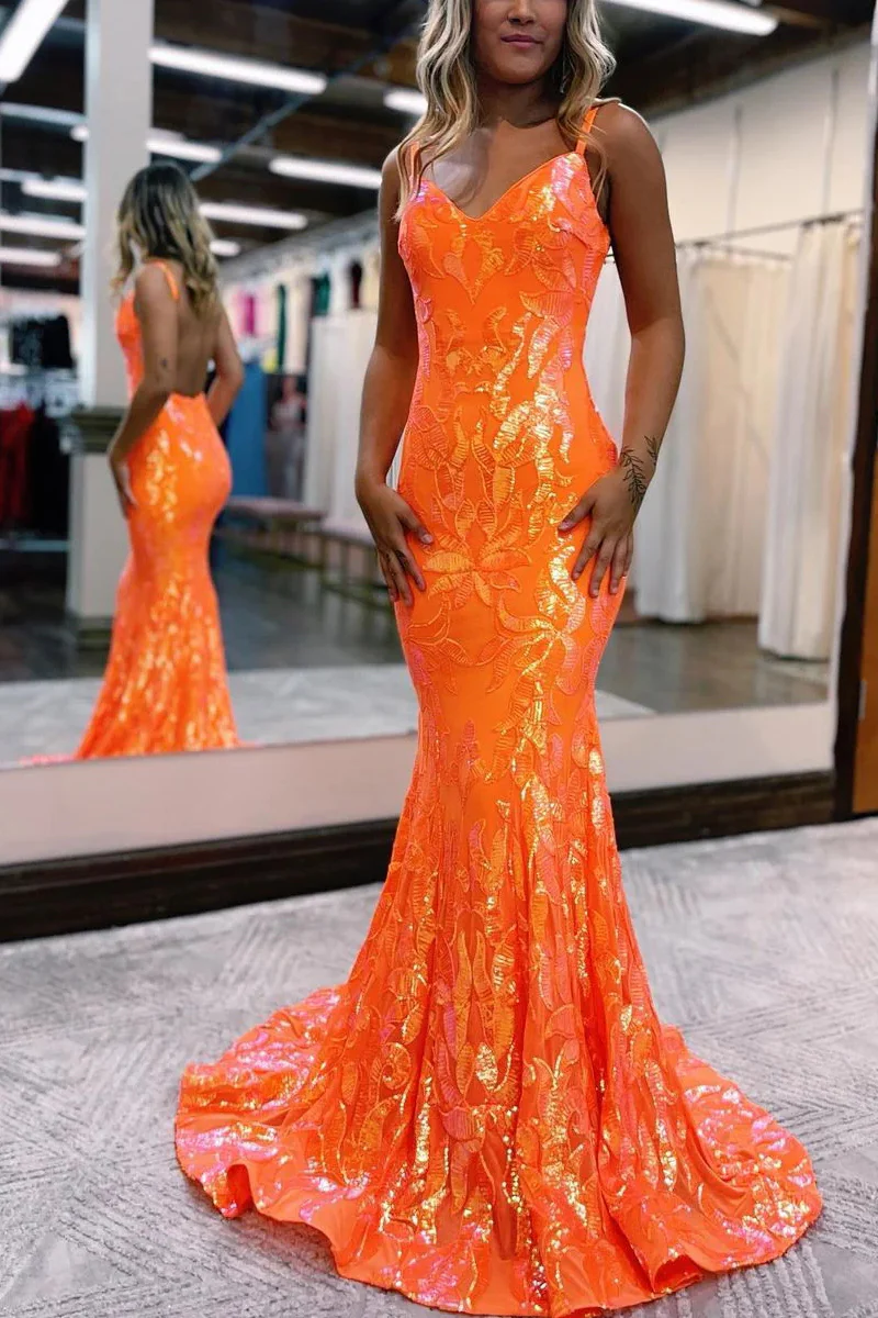 Orange Backless Prom Dress, Orange Mermaid Prom Gown Y2247