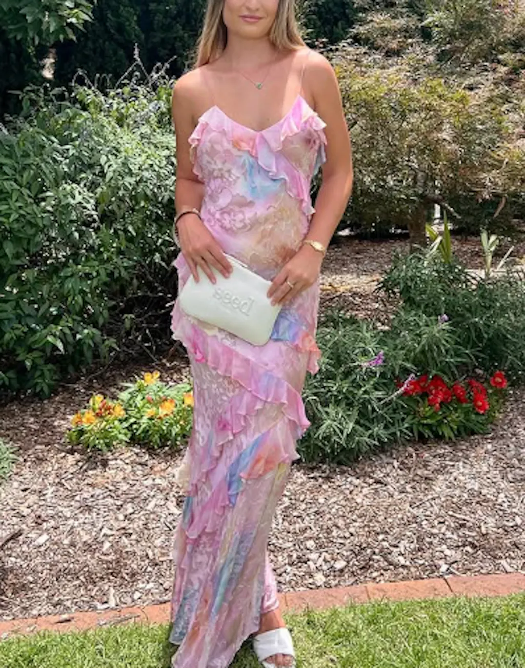 Romantic Spaghetti Straps V Neck Chiffon Print Prom Dress,Charming Evening Dress Y2306