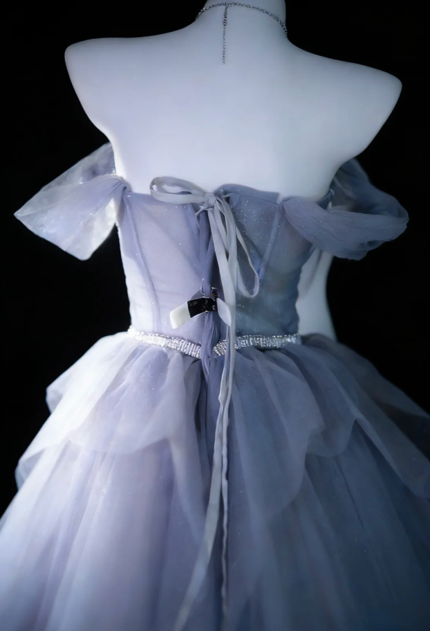 Shiny Blue Off The Shoulder Tulle Sequin Long Evening Dress 20th Birthday Outfits With Beads SP1837