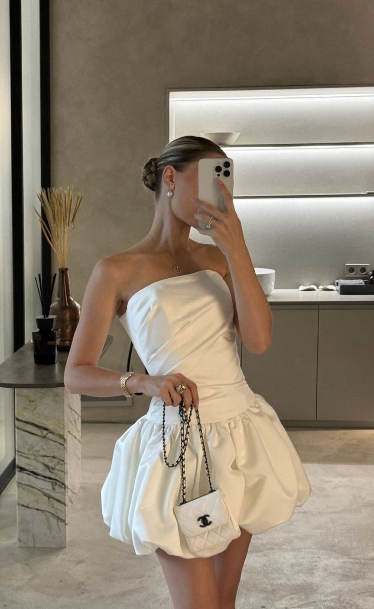 White Strapless Elegant A Line Short Cocktail Dress Formal Graduation Homecoming Dress Y9515