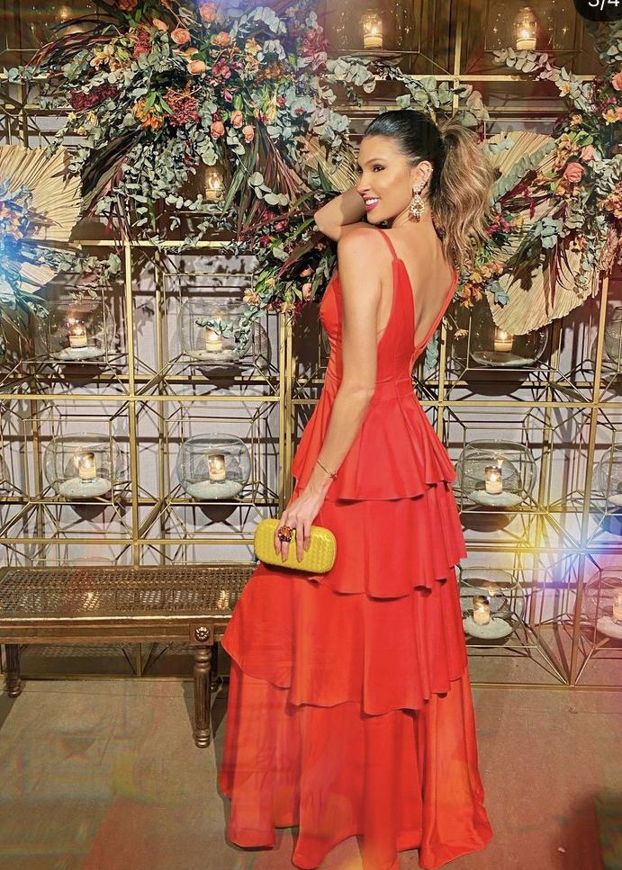 A-line Spaghetti Straps Red Tiered Evening Dress Y5466