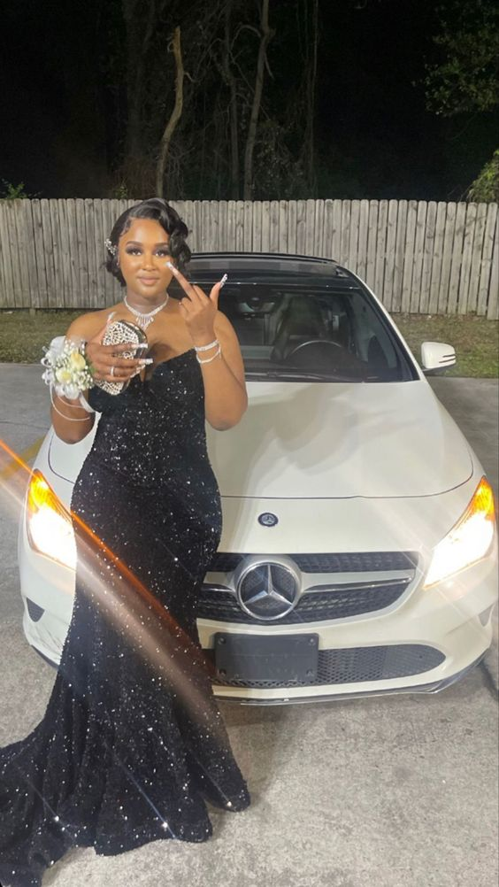Black Sequin Sweetheart Mermaid Long Prom Dress Y7243