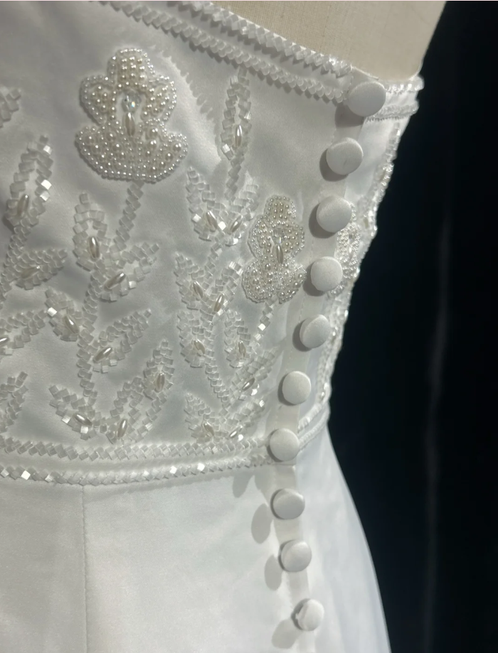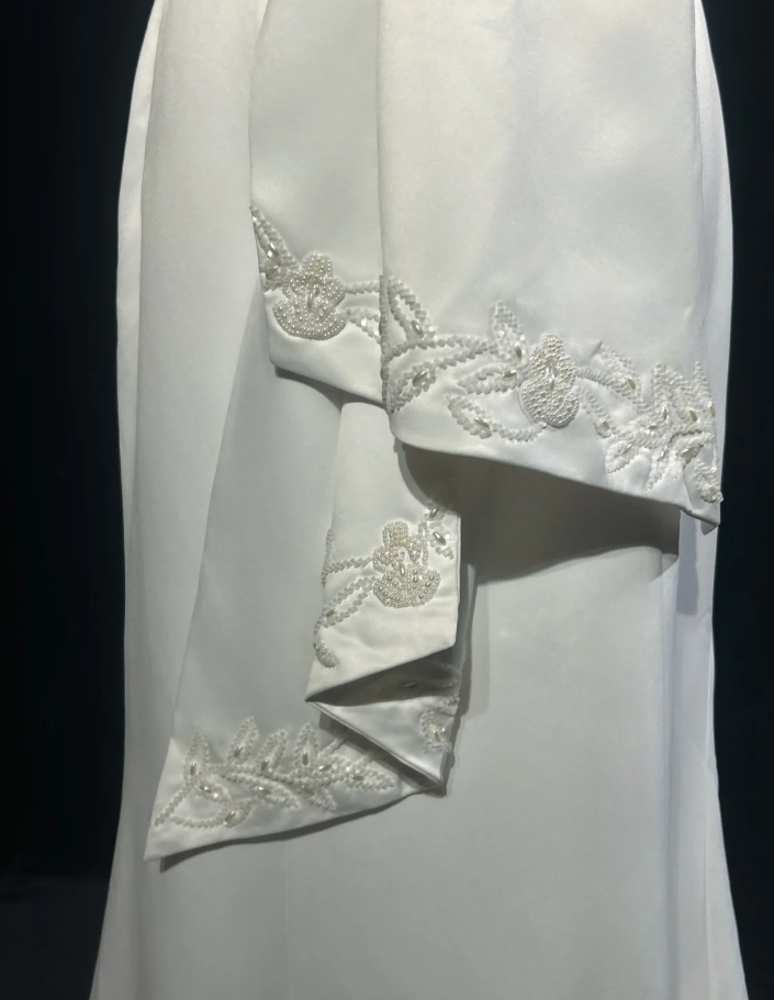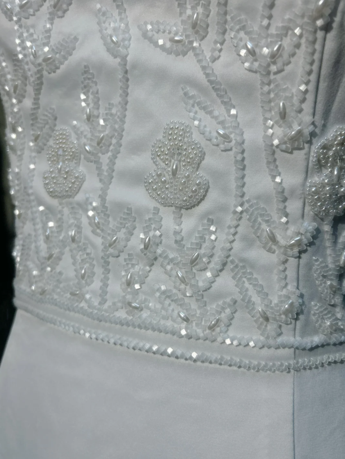 Charming Strapless Satin Beaded Mermaid Evening Dress White Long Birthday Dress SP1790