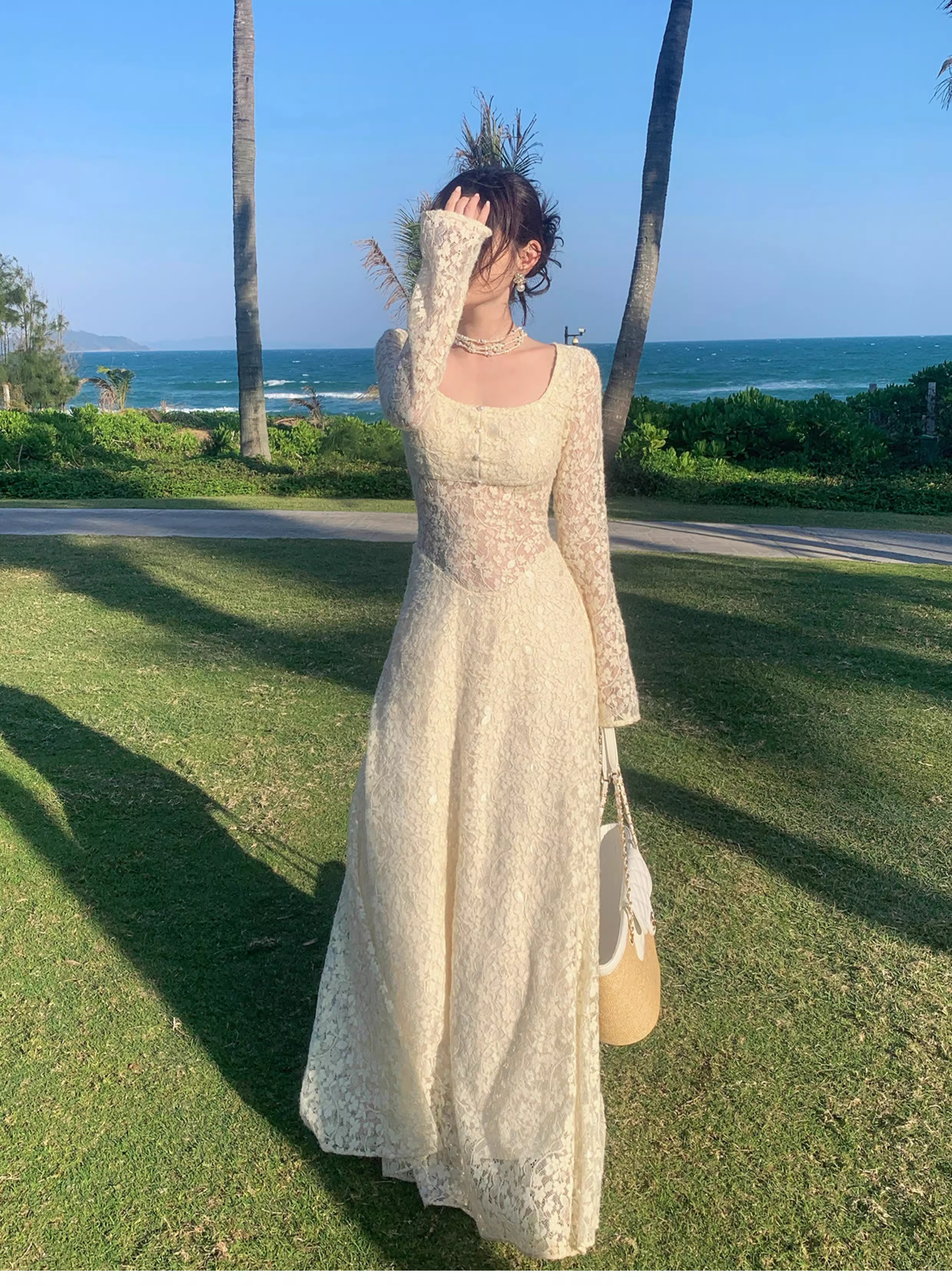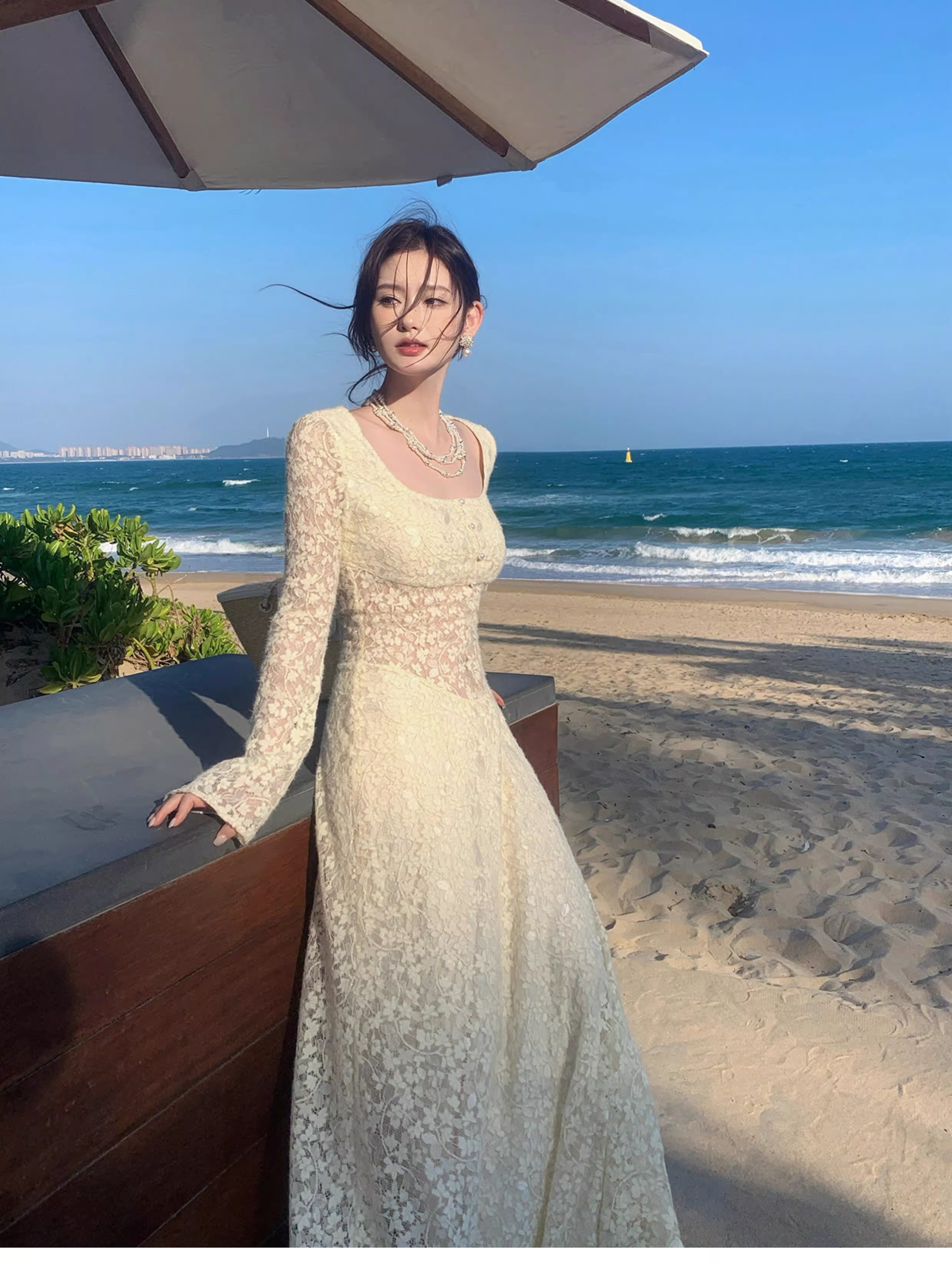 Charming Yellow Lace Mermaid Long Party Dress Birthday Prom Dress SP1976