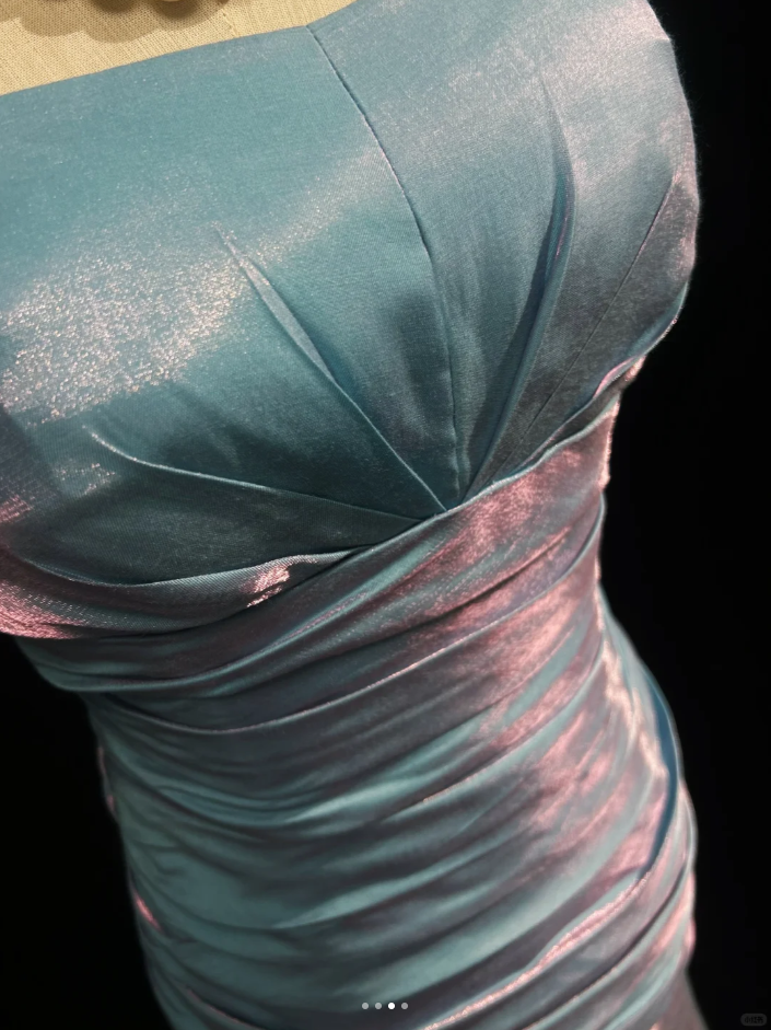 Dreamy Strapless Satin Pleated Mermaid Long Birthday Prom Dress Evening Gown,Blue Wedding Guest Dress SP1436
