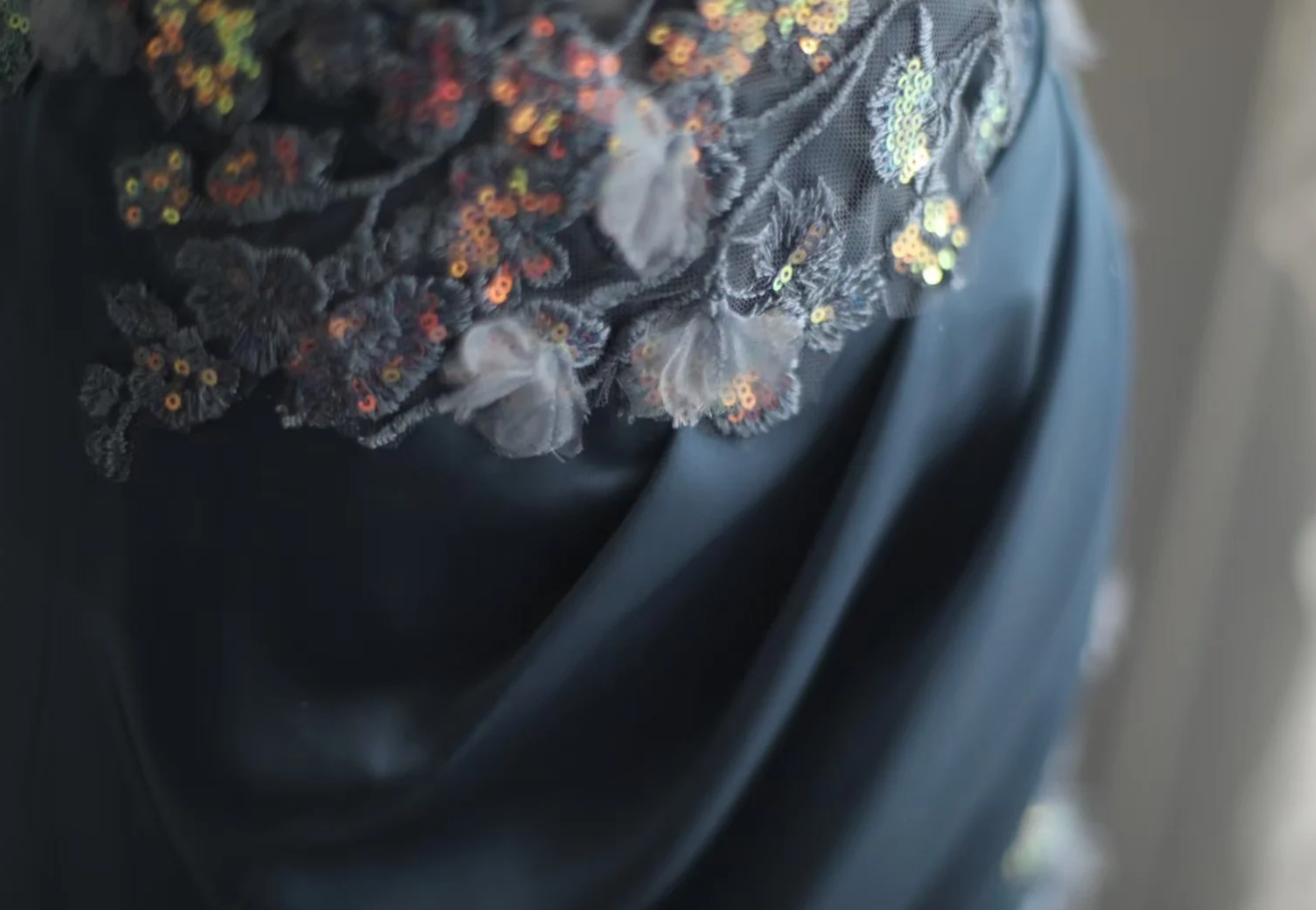 Elegant Blue Off The Shoulder Satin Sequin Appliques Mermaid Evening Dress Silt Long Wedding Guest Dress SP1211