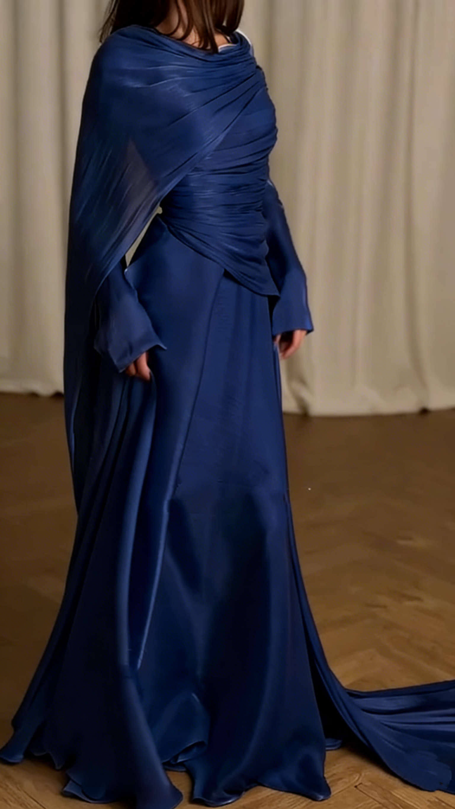 Elegant Blue Tulle Pleated Mermaid Long Party Dress Prom Gown Formal Wedding Guest Dress SP1312
