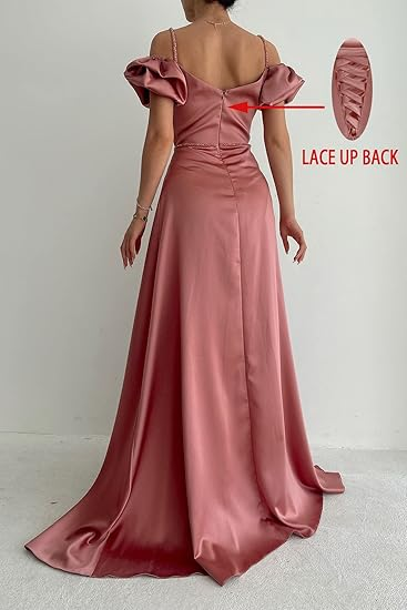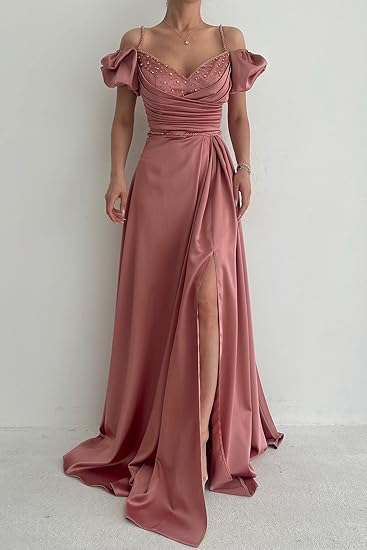 Elegant Dusty Rose Off-the-shoulder A-line Prom Dress With Slit Y4829