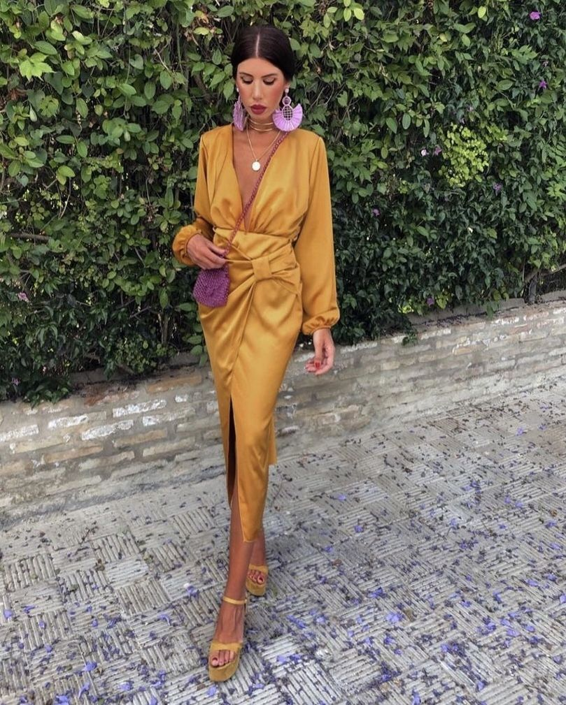 Elegant Long Sleeve Wrap Dress,Fashion Yellow Prom Dress Y4756