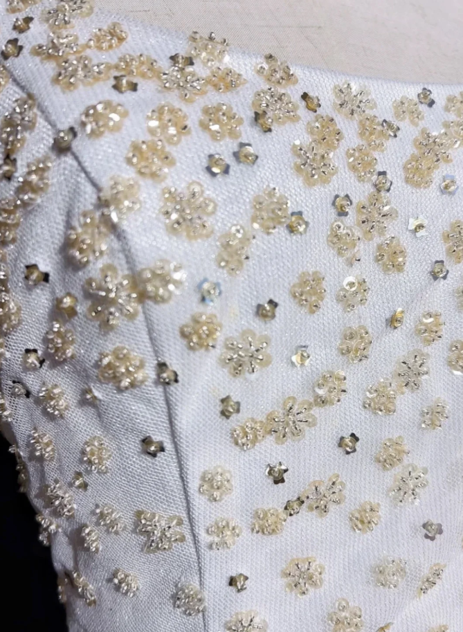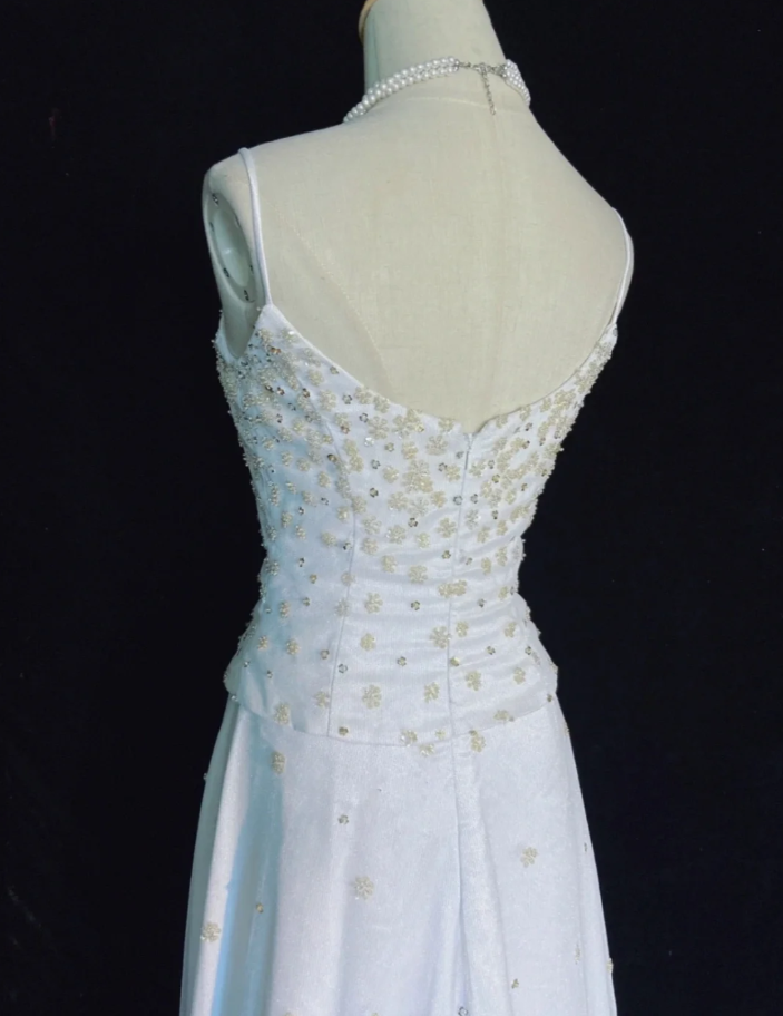 Elegant Spaghetti Straps White Tulle Beaded Mermaid Evening Dress Long 17th Birthday Outfits SP1783