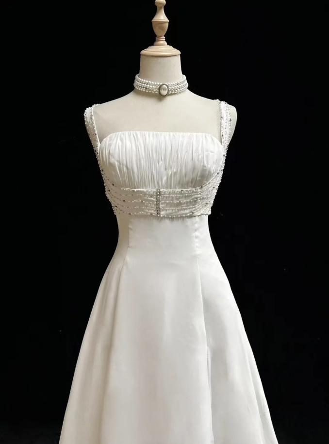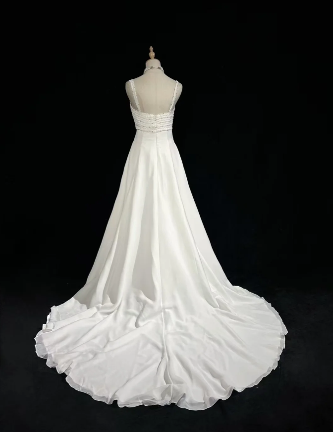 Glamorous Spaghetti Straps White Chiffon Beaded Mermaid Long Wedding Dress Formal Bridal Dress SP1793