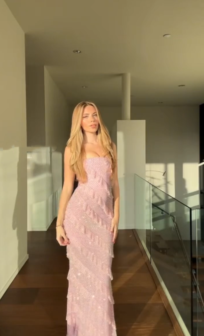 Glamorous Strapless Pink Sequin Ruffle Long Party Dress Wedding Guest Dress SP358