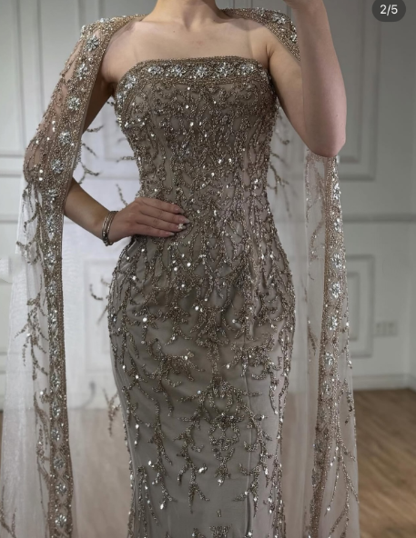 Gorgeous Strapless Gray Tulle Beaded Mermaid Long Party Dress Prom Gown SP1348