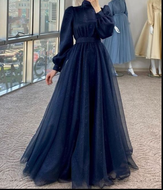 Modest A-line Long Sleeves Prom Dress,Muslim Dress Y5848