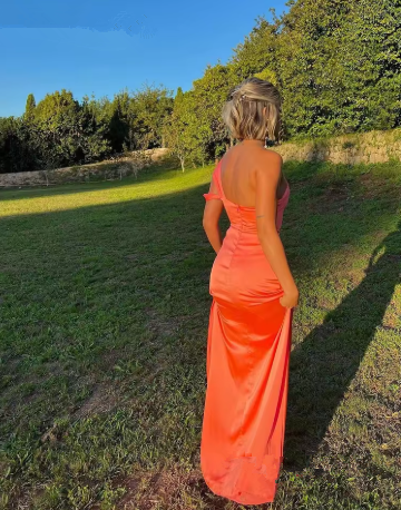 Orange Sheath Prom Dress,Orange Wedding Guest Outfit Y5170