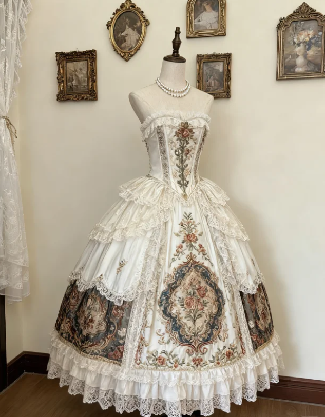 Retro Strapless Satin Lace Ball Gown Formal Quinceanera Dress SP315