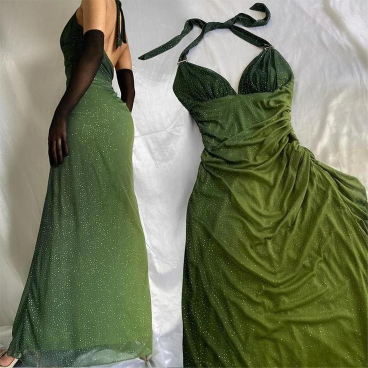 Sexy Halter Ombre Green V Neck Chiffon Long Prom Dress Party Evening Gown Y7484
