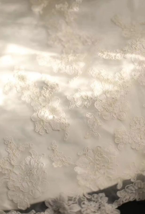 Strapless White Tulle Lace Appliques Layered Mermaid Long Wedding Dress Bridal Dress SP1244