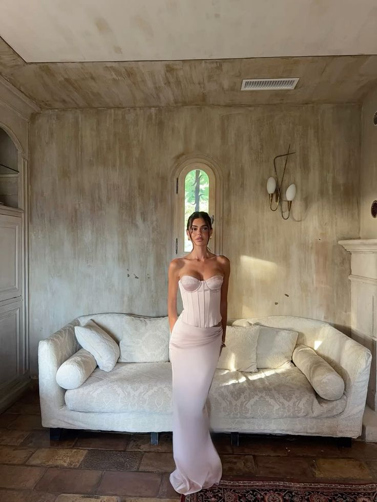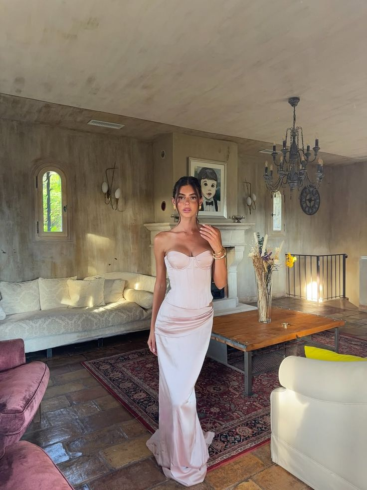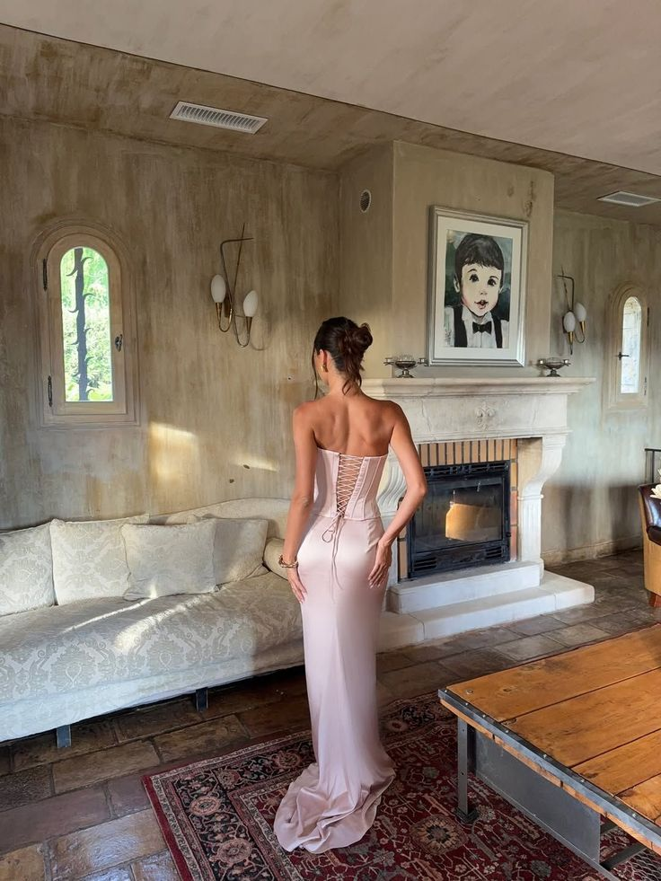Sweet Pink Strapless Satin Mermaid Evening Dress Birthday Outfits SP788
