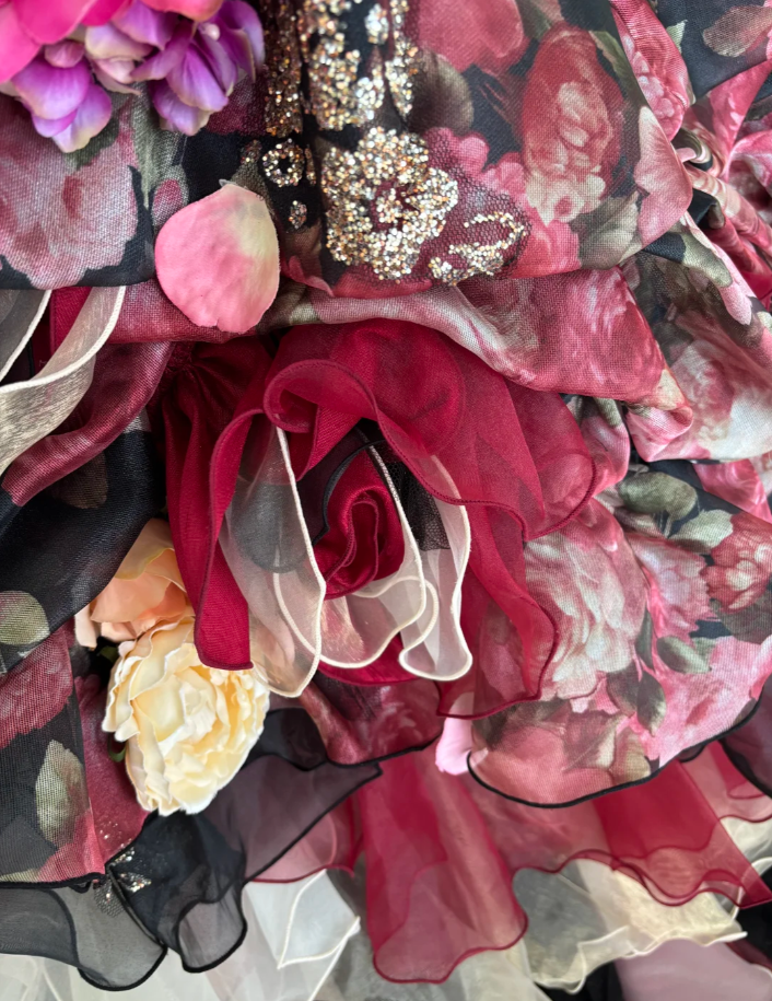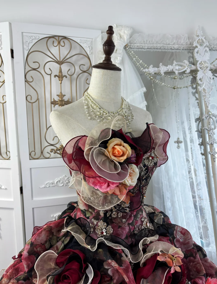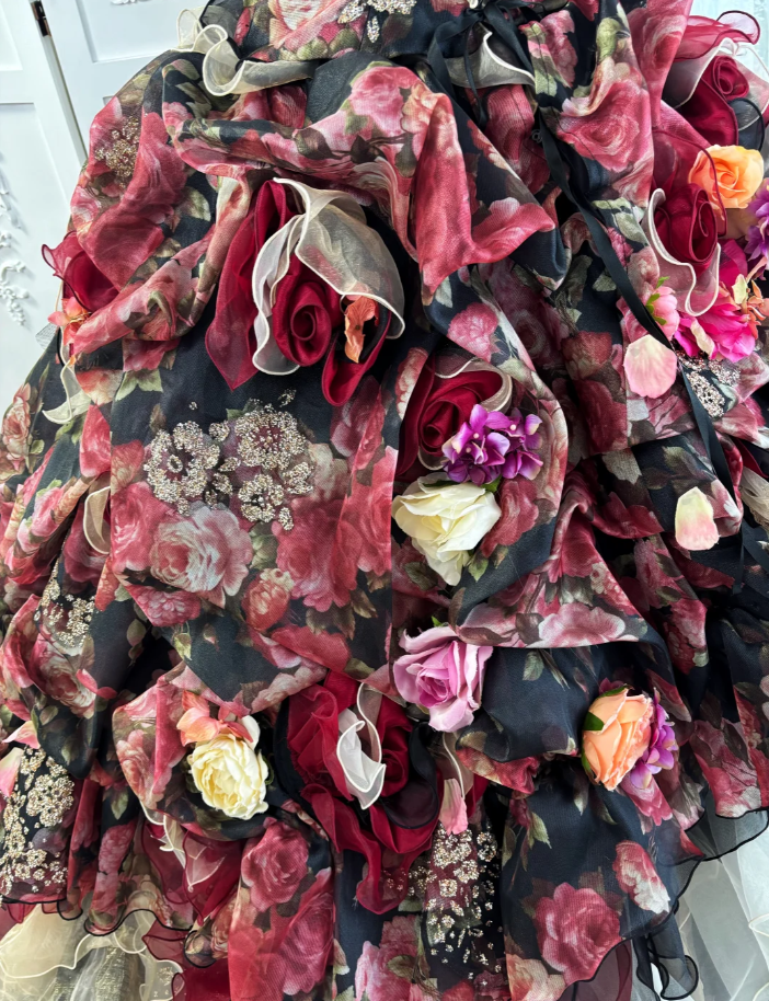 Vintage Strapless Ball Gown Chiffon Rose Floral Ruffle Princess Quinceanera Dress SP1771
