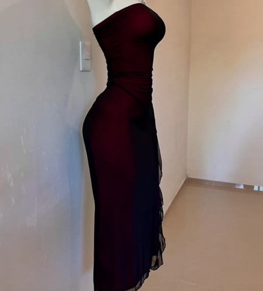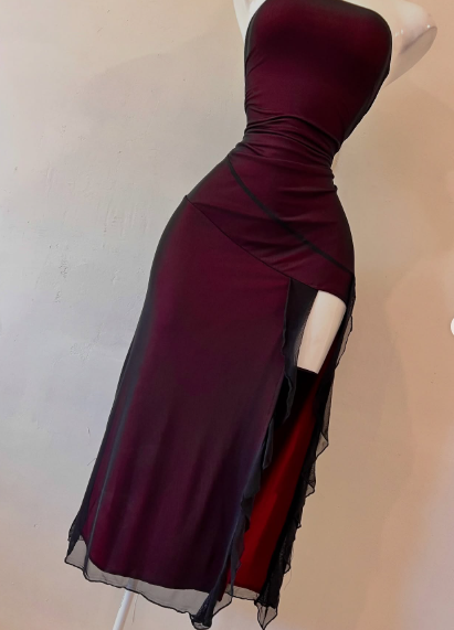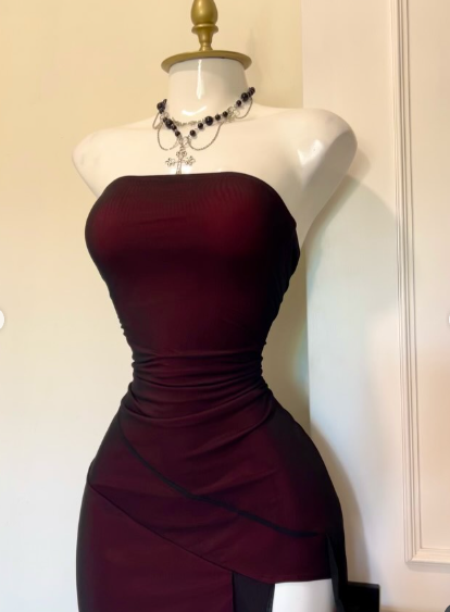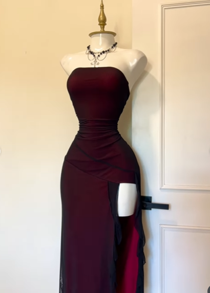 Vintage Strapless Burgundy Sheath Slit Prom Dress Birthday Party Dress Y9635